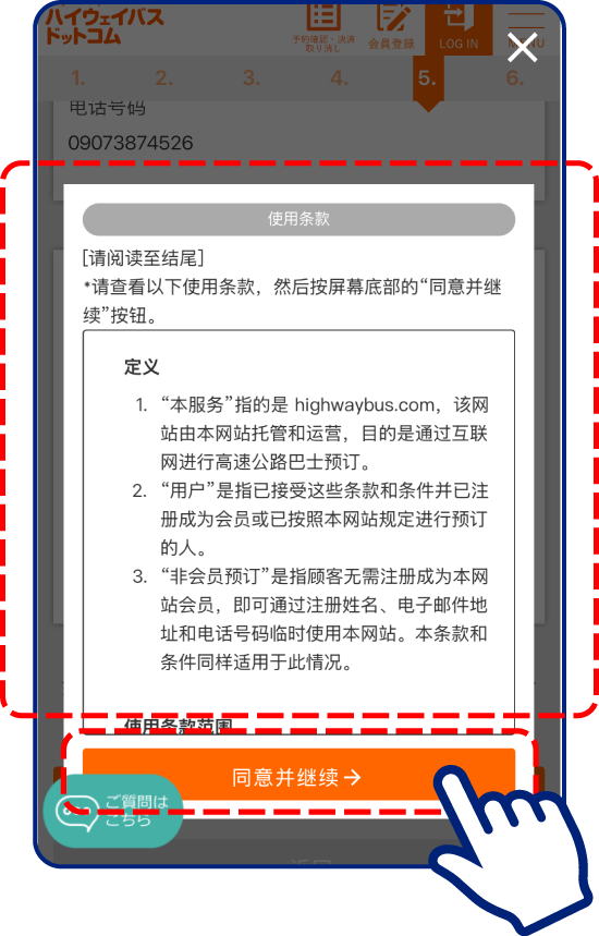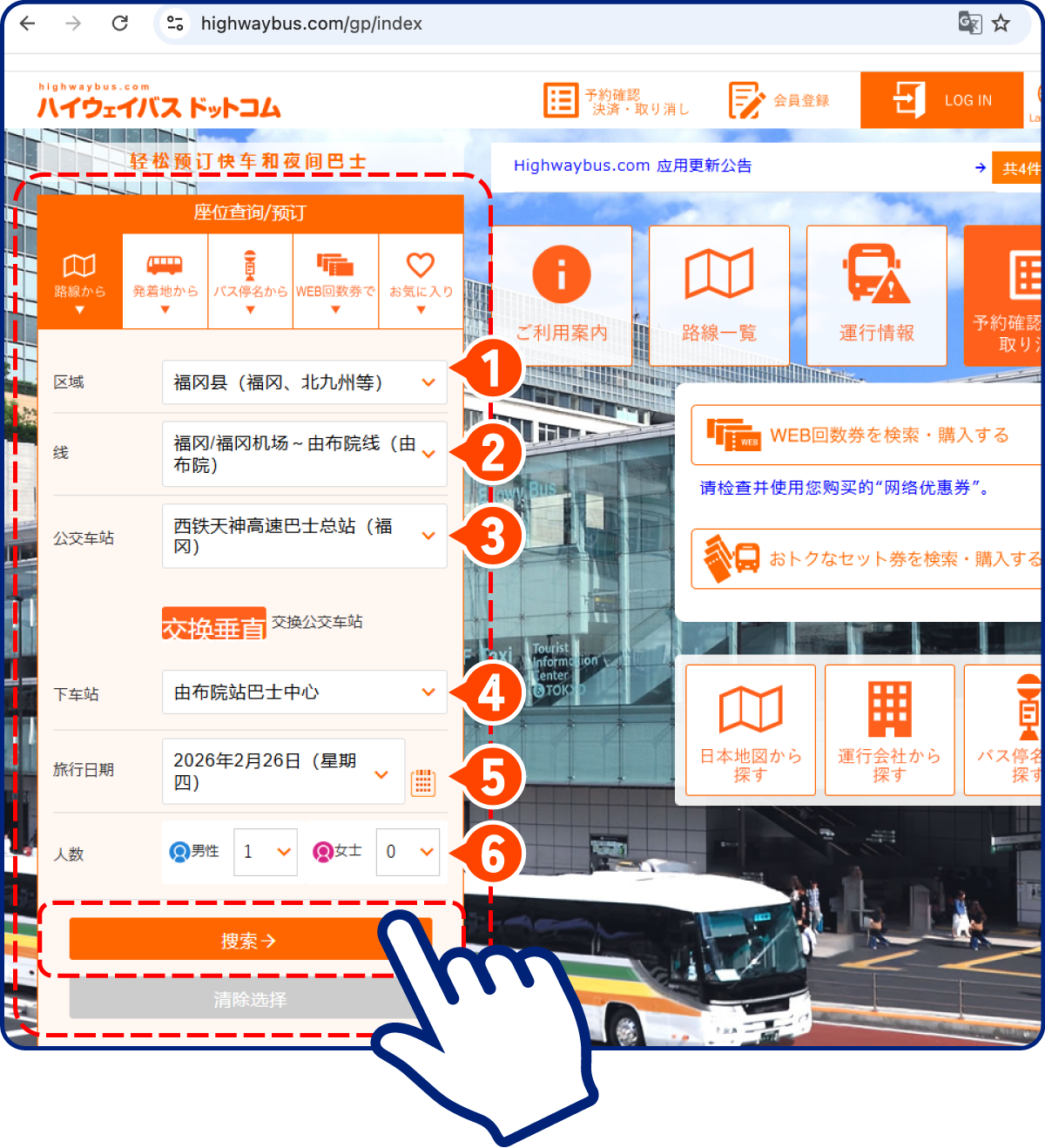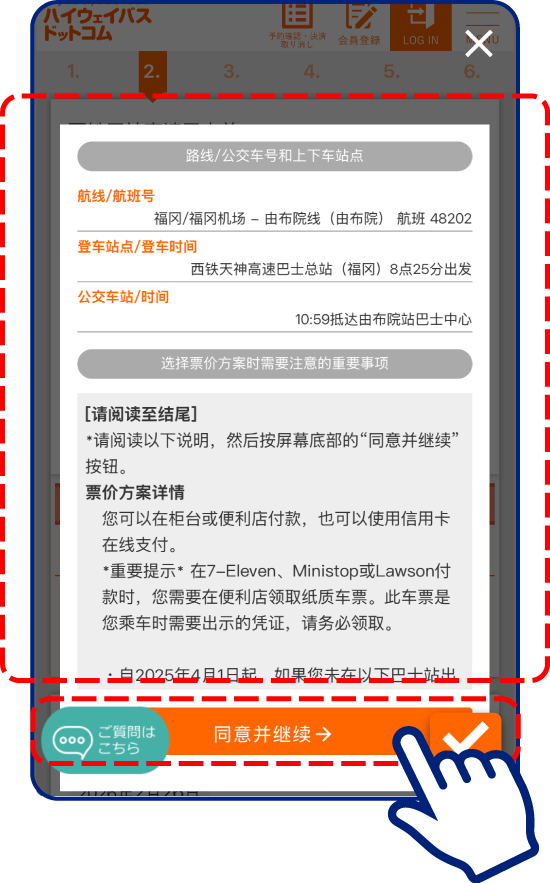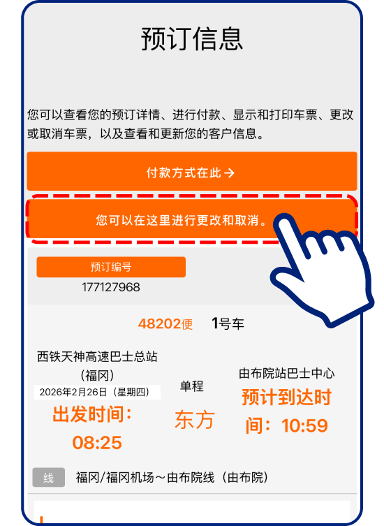 领取高速巴士的确保券(座位券)。