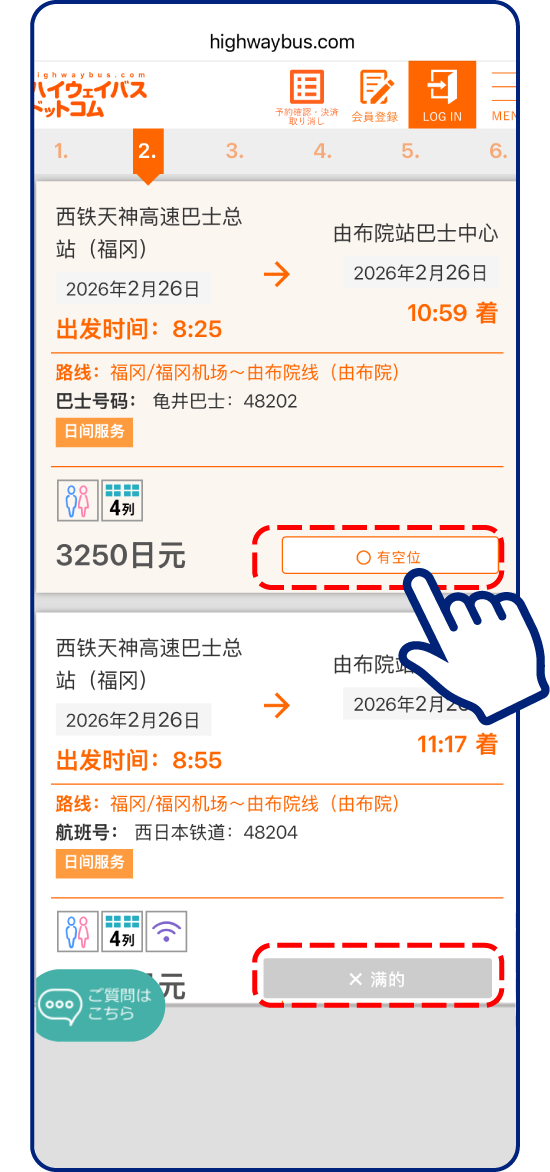 从显示的列表中选择您想乘坐的班次!