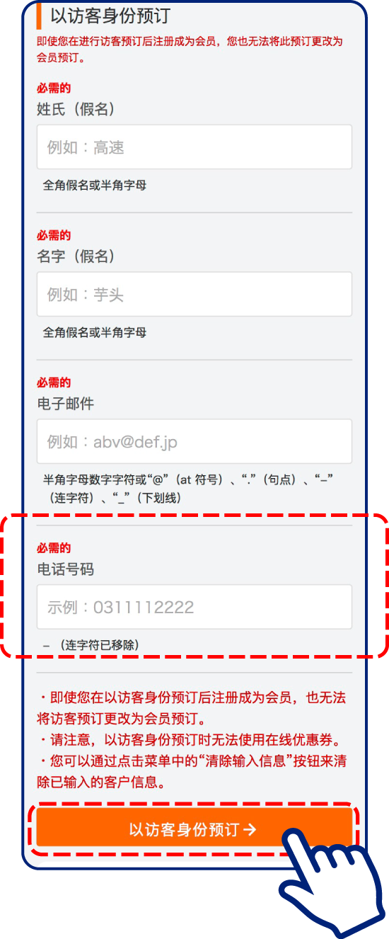 预订时输入的电话号码