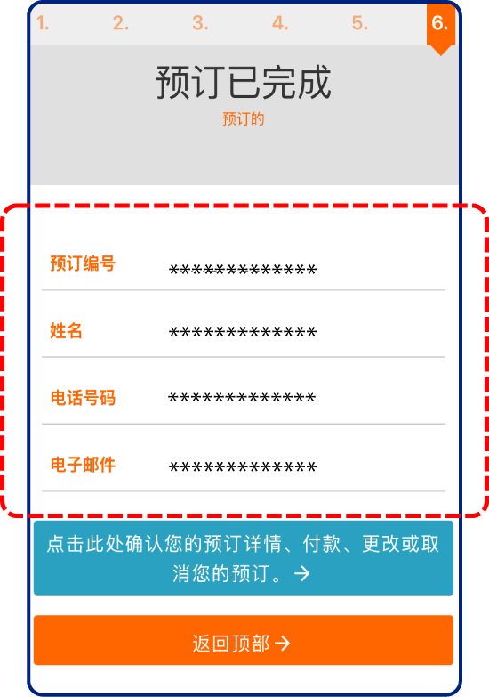 请务必记下预订编号和电话号码