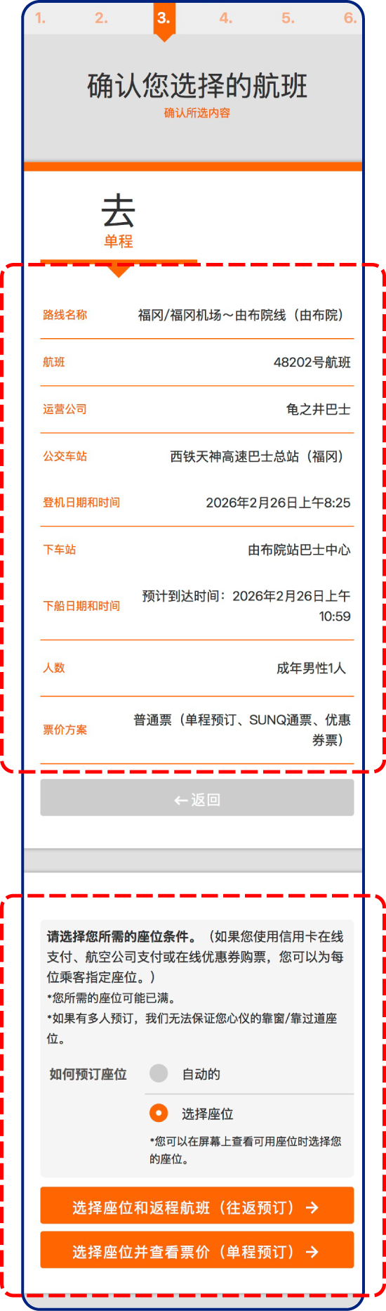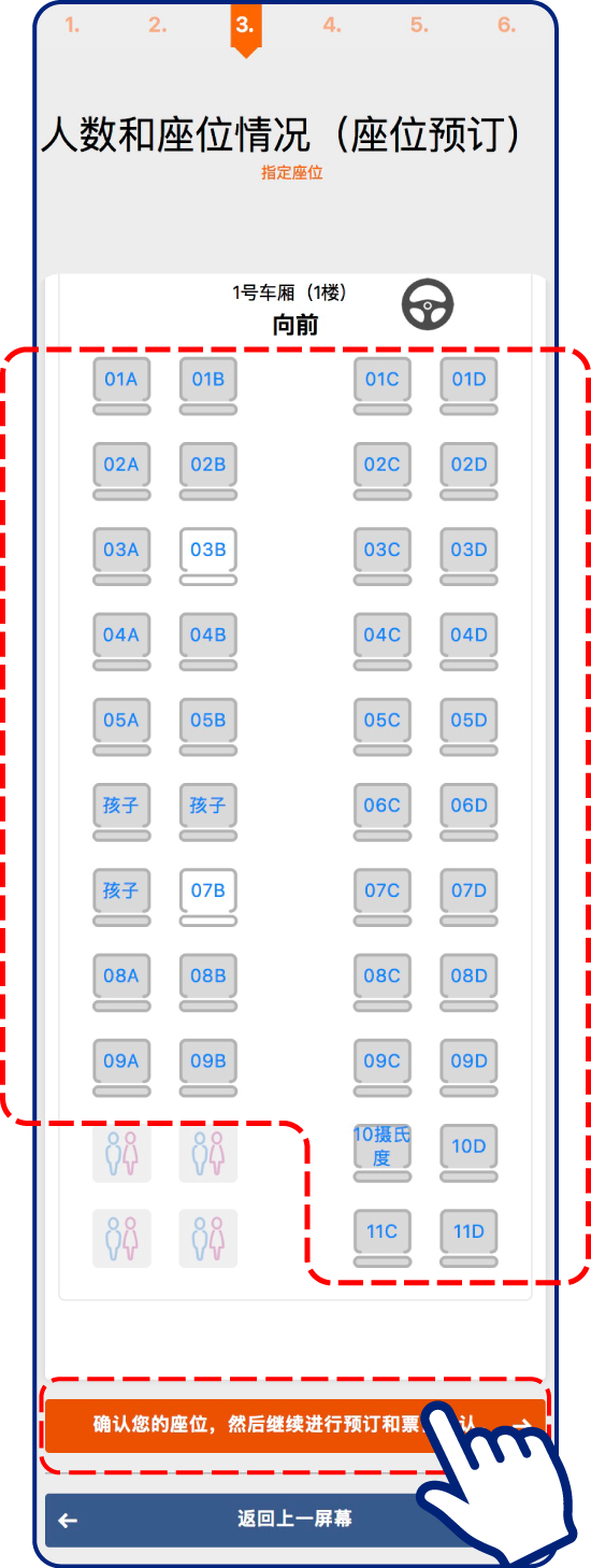 确认预订内容后,请选择座位