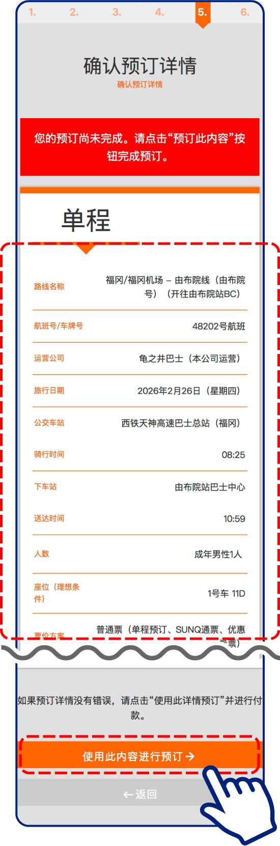 请确认您要预订的路线、