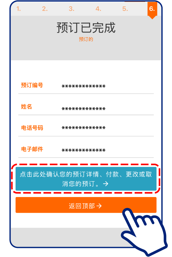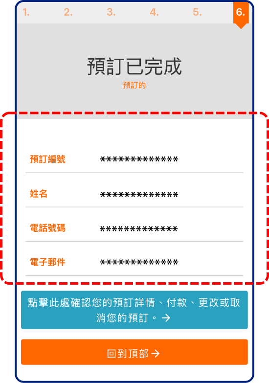 請務必保留預約編號與電話號碼。