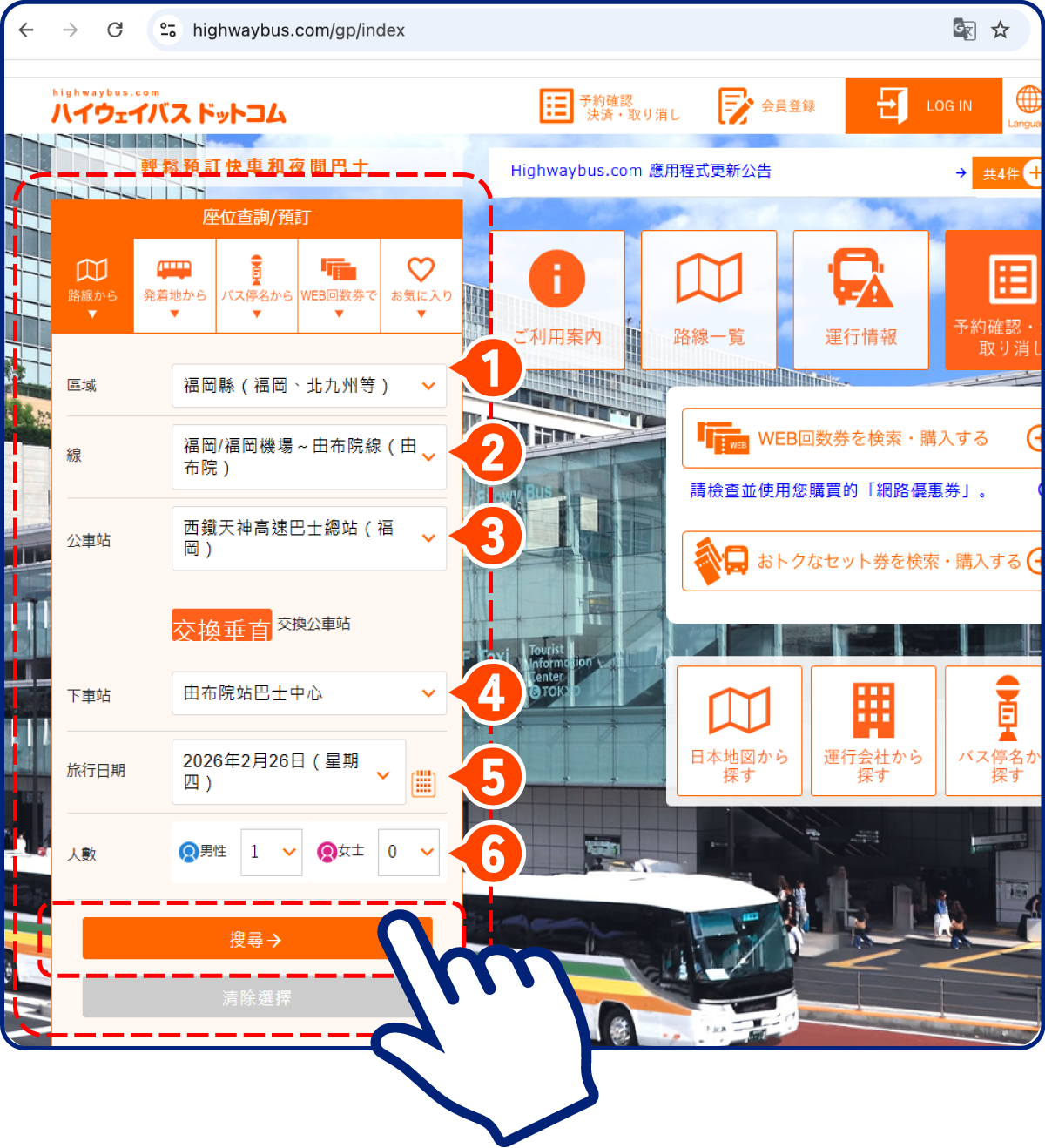 事先加入highwaybus.com會員,預約過程更順暢。