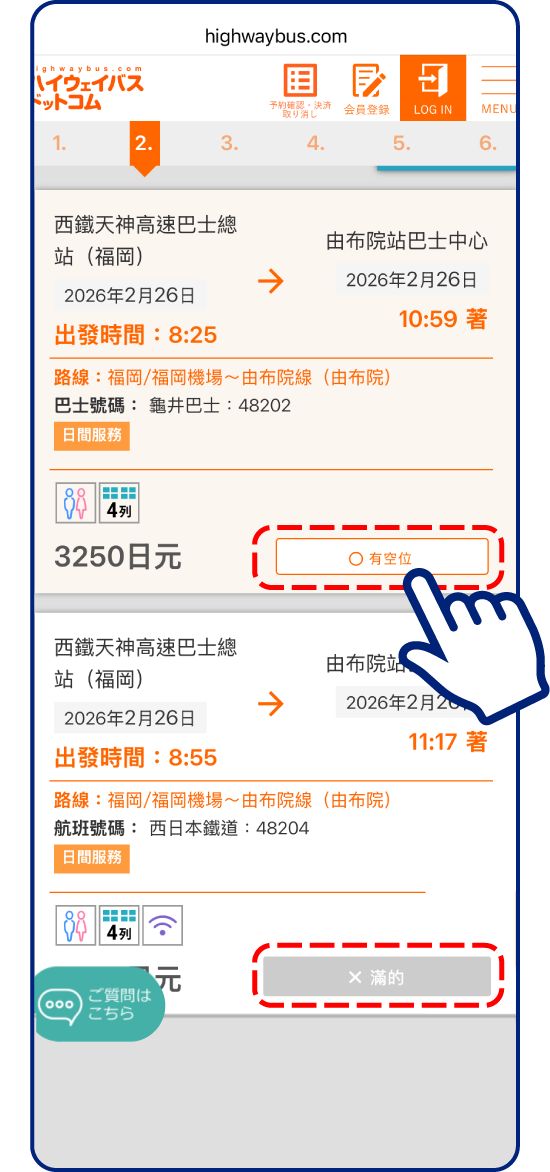 從顯示的清單選擇欲搭乘班次!