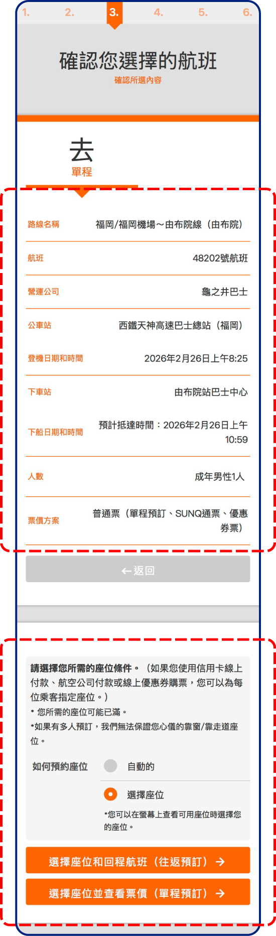 請選擇要指定單程座位,