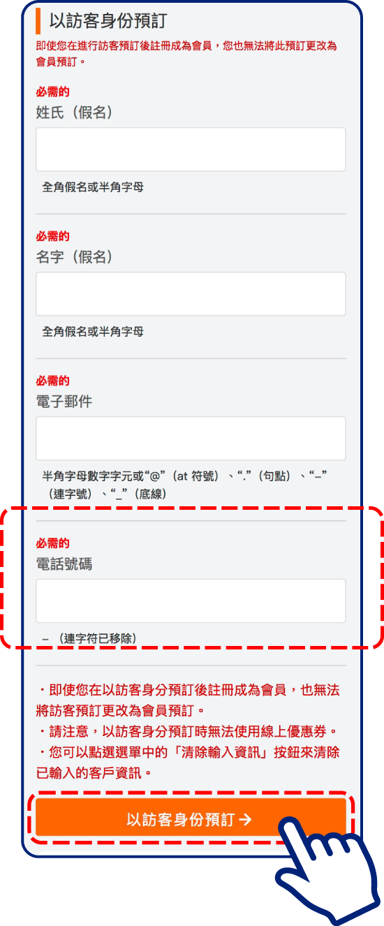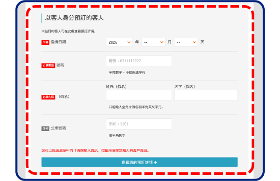 預約時輸入的電話號碼