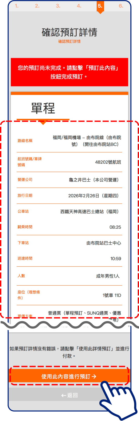 並收取高速巴士確保券(座位券)。